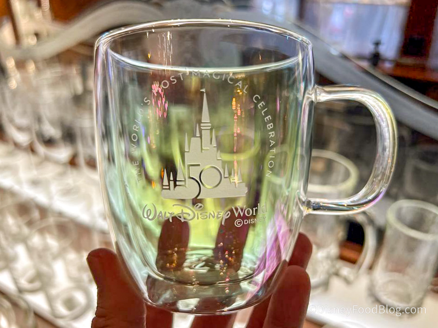 The prettiest mug we’ve ever seen is back in Disney World! We found the 50th Anniversary EARidescent mug at Crystal Arts in Magic Kingdom.