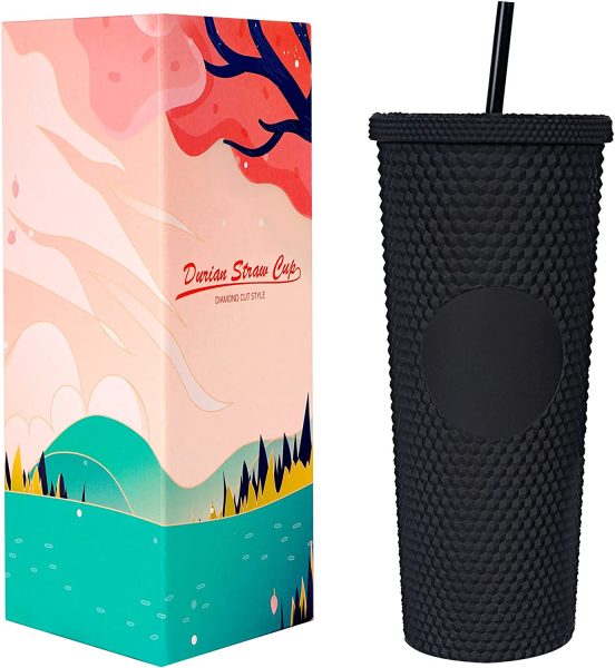 First up, we have this Studded Matte Black Tumbler with a lid and a straw!