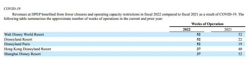 For starters, many (but not all) of the Disney parks were open for more weeks in 2022 than they were in 2021. 2021 brought with it a number of COVID-19-related closures that impacted things. But we’re still seeing some limited closures with Shanghai Disneyland in 2022.