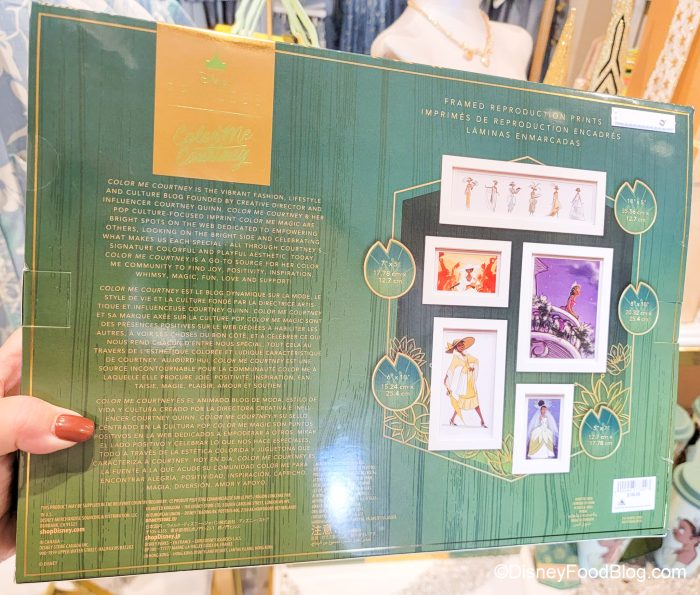 We found a Color Me Courtney Set of Framed Prints of Tiana. She’s in some amazing 1920s finery in all of them, and this might be a MUST for Tiana fans!