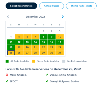 2022-wdw-park pass reservations calendar-dates selling out for holidays-christmas day By Sara McOmber Leave a Comment