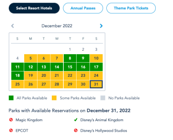 2022-wdw-park pass reservations calendar-dates selling out for holidays-new years eve By Sara McOmber Leave a Comment