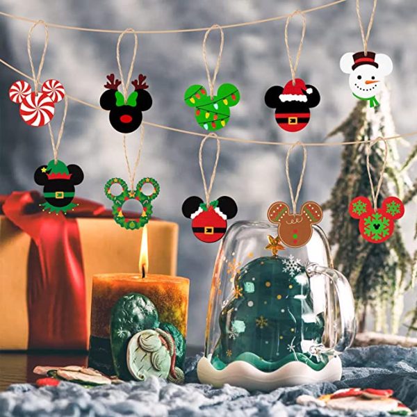 These ornaments are all shaped like Mickey Mouse and feature gingerbread, snowflake, and Santa decorations, among many more.