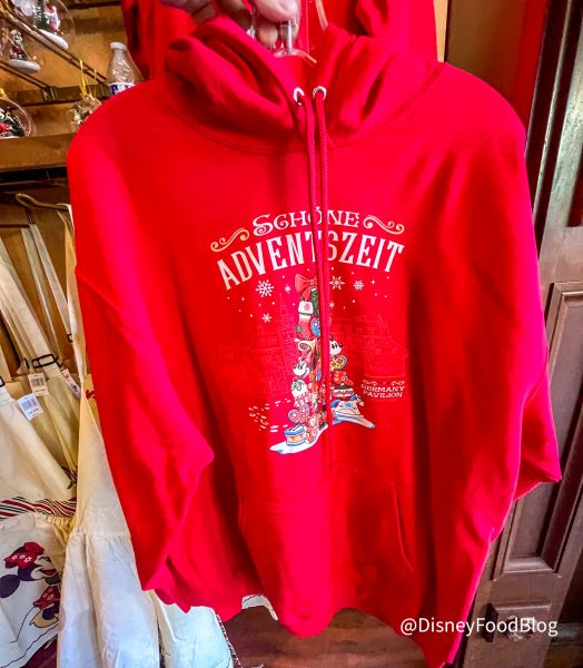 Heading into the Germany pavilion, we found lots of holiday cheer! First, is this Christmas German Hoodie for $54.99.