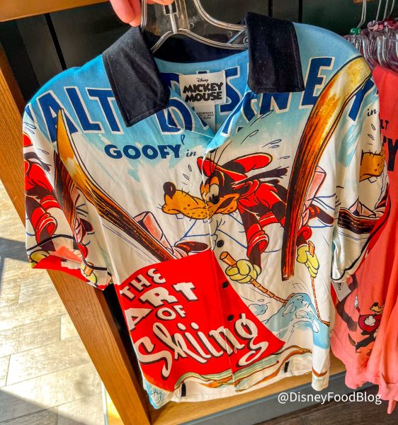 Over at the entrance to World Showcase, we found several items that made us a little goofy! The first was this Goofy Button-Up Shirt inspired by the Art of Skiing short for $59.99.