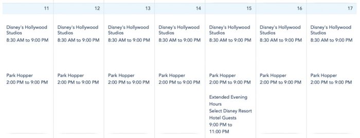 Disney’s Hollywood Studios will be open from 8:30AM to 9PM all week.