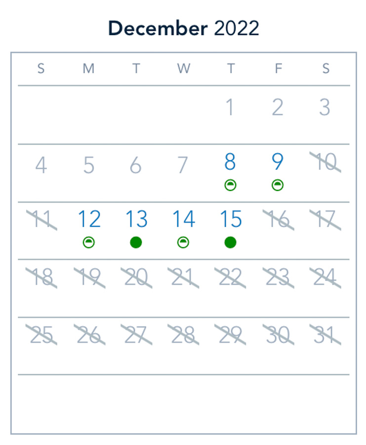 If you have the Pirate Pass, December 16th & 17th are blocked out, and Magic Kingdom is unavailable for December 12th & 14th.