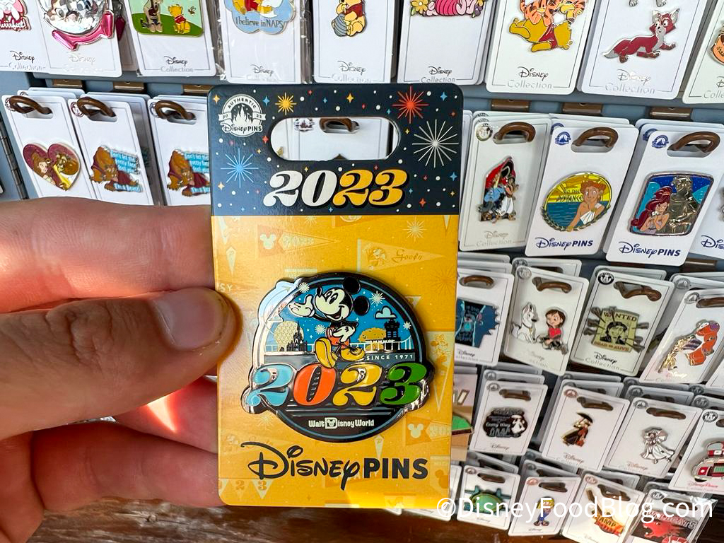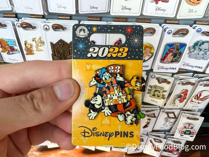 There’s also a 2023 pin that features Mickey on his own with the park icons behind him!