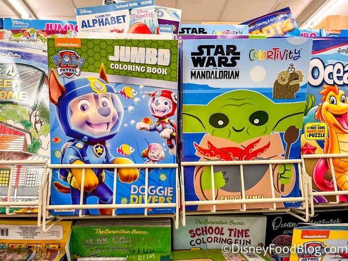 Besides the activity books at the front of the store, we spotted some just regular coloring books in the back. These are inspired by Paw Patrol and The Mandalorian. How cute is that Grogu?!