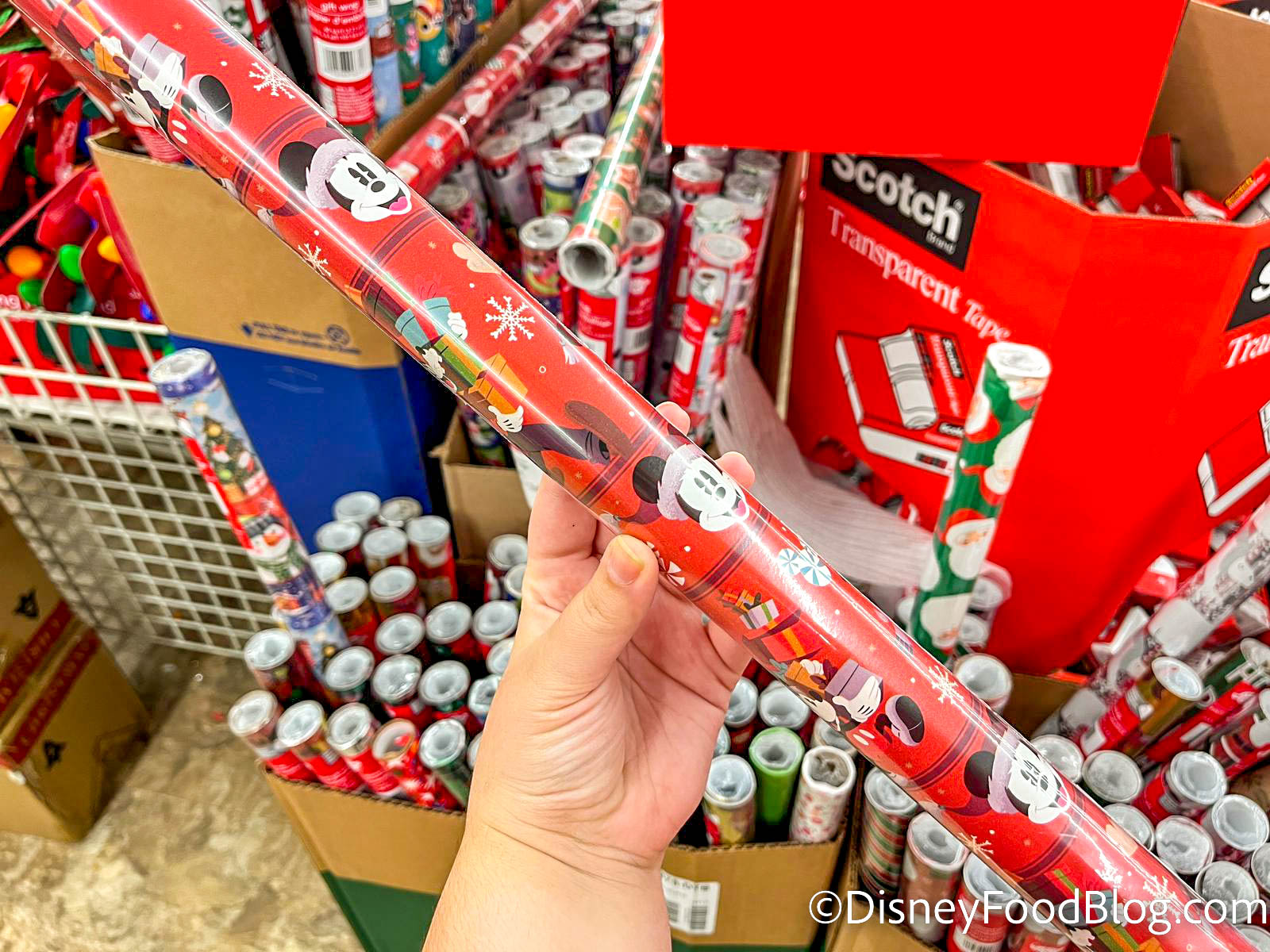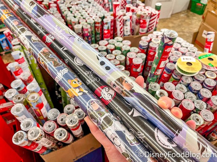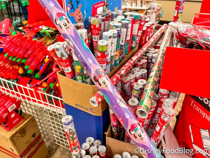 And finally, our 10th item is actually a bunch of different versions of the same thing — wrapping paper! In the holiday bins at the front of the store, we found a bunch of different Disney patterns.
