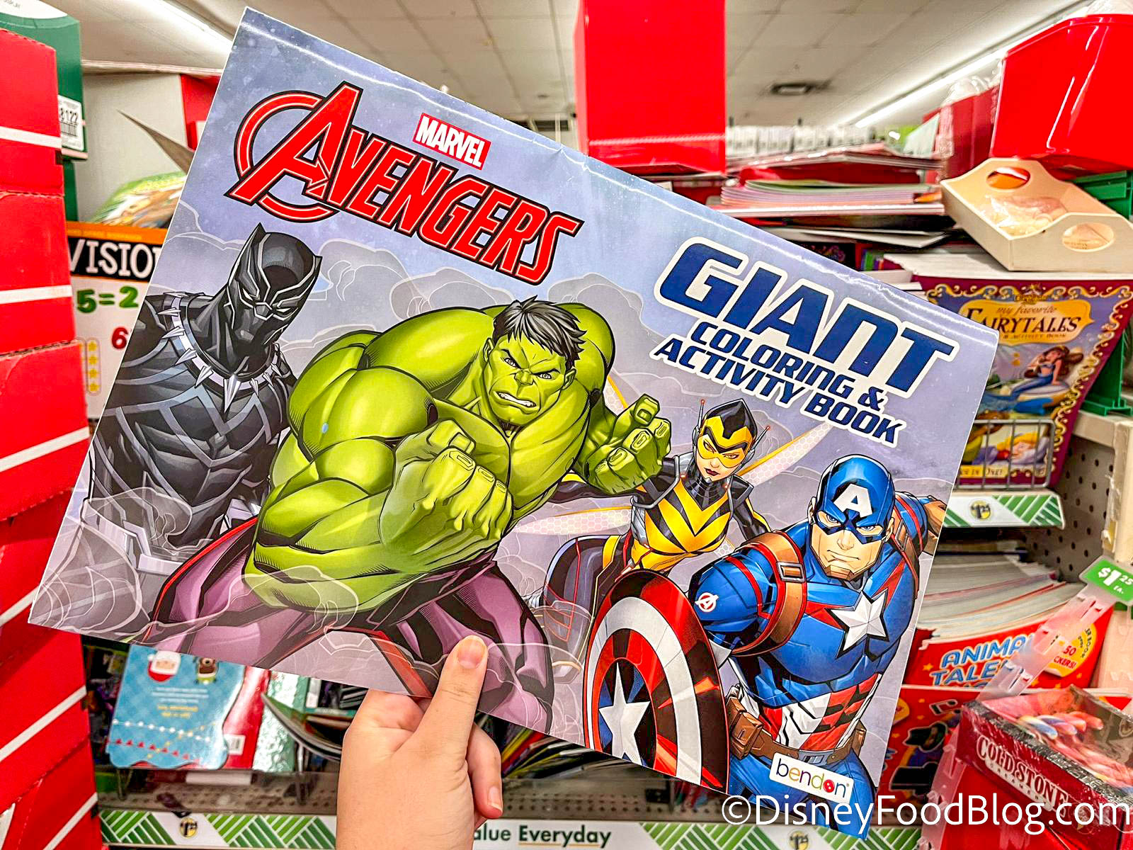 First up, we’ve got some activity books! There’s a GIANT Avengers-themed coloring and activity book that all the little superhero fans will probably love. (That’s a great idea for keeping kiddos entertained on long car rides!)