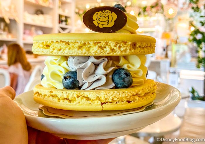 This massive macaron is called the Lemon Blueberry Marie Antoinette. Each macaron shell sandwiches a filling of pastry cream, fresh lemon curd, and lemon and blueberry buttercream. It sounds like this and other sweet treats will be available at the restaurant’s quick service counter!