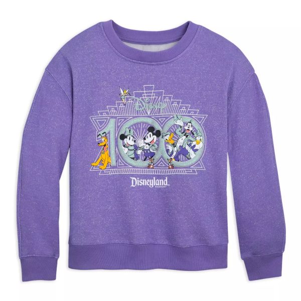 This shirt features a black base with Disney characters scattered across. You’ll find the scatter design on an orange Disney100 Unified Characters Pullover Sweatshirt for Girls ($34.99) and matching Pants for girls ($29.99).