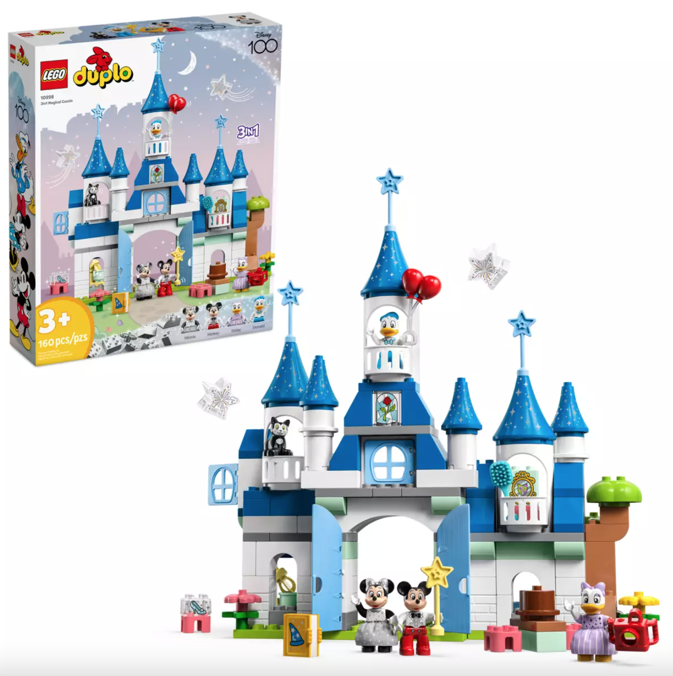 Choo-choo! All aboard the NEW Disney100 Train Set by Lionel. This thing has it ALL — an operating headlight, puffing smoke, rail sound effects, and much more. If your train set lives in a low-light area, you can enjoy the special LED illuminated tender with multicolored LEDs that flicker when connected to power. From the puffs of smoke to the flickering lights, this train has so many special details. Plus, it honors Disney’s 100th Anniversary with Mickey and Minnie characters!