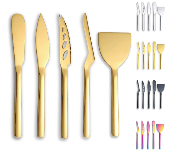 Calling all cheese lovers (it’s us)! For your next charcuterie parties, you’ll need this cheese knife set, which comes in a variety of colors.