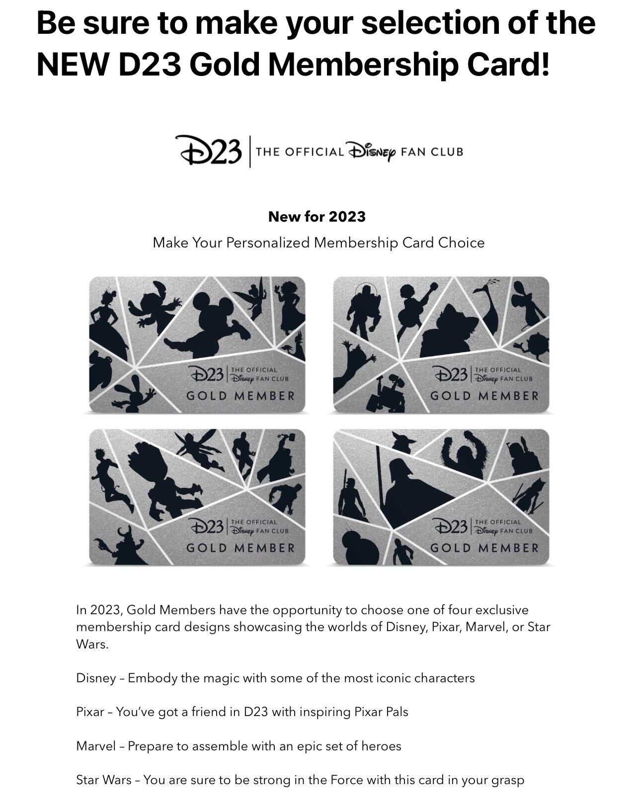 D23 Gold Members are getting an upgrade to their cards for 2023! We just saw the fancy new designs and we’re digging the theming.