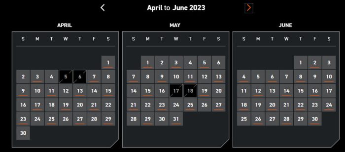Things begin to change moving into the summer months. In late January 2023, we noticed there were quite a few more dates missing from the availability shown this summer.
