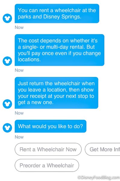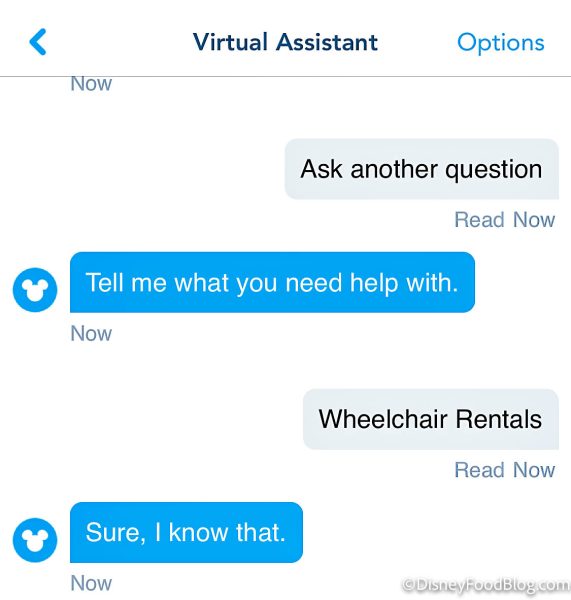 We tapped “Ask another question” and inquired about wheelchair rentals.