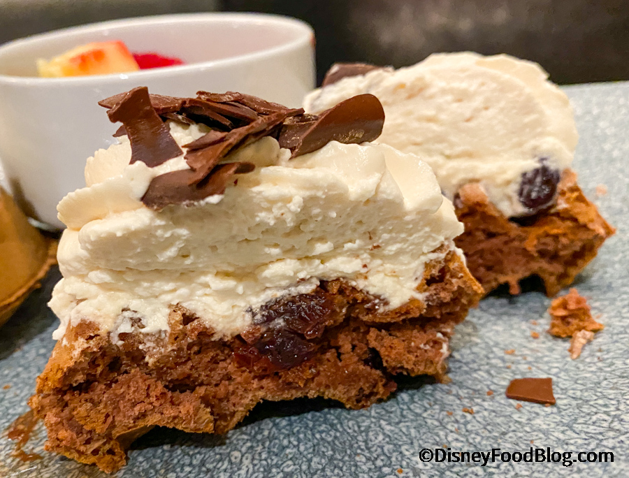 At dinner, the Cape May dinner buffet features New England seafood favorites, including Clam Chowder, snow crab legs, and fried seafood. Do not miss the Oreo Bonbons among the dessert selection here. They are a cookies-and-cream mousse-filled bonbon on top of an Oreo cookie, and they are a perennial DFB favorite!