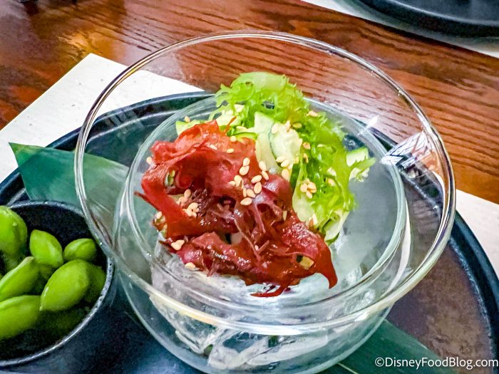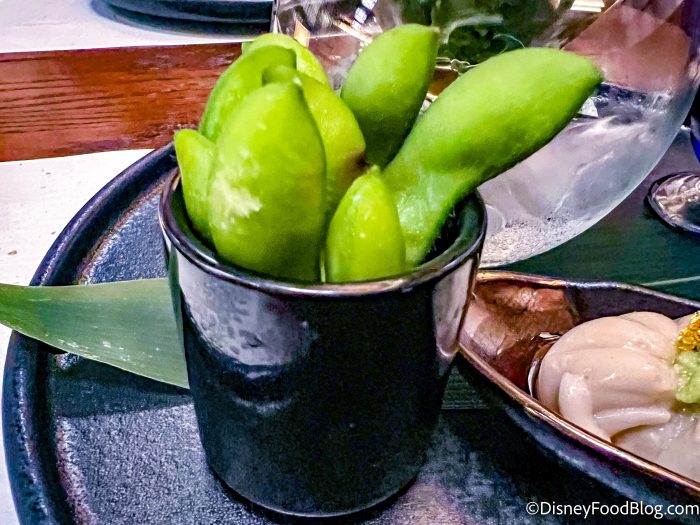We also got edamame with this appetizer course and our reporter shared that it was some of the BEST edamame they’ve ever had!