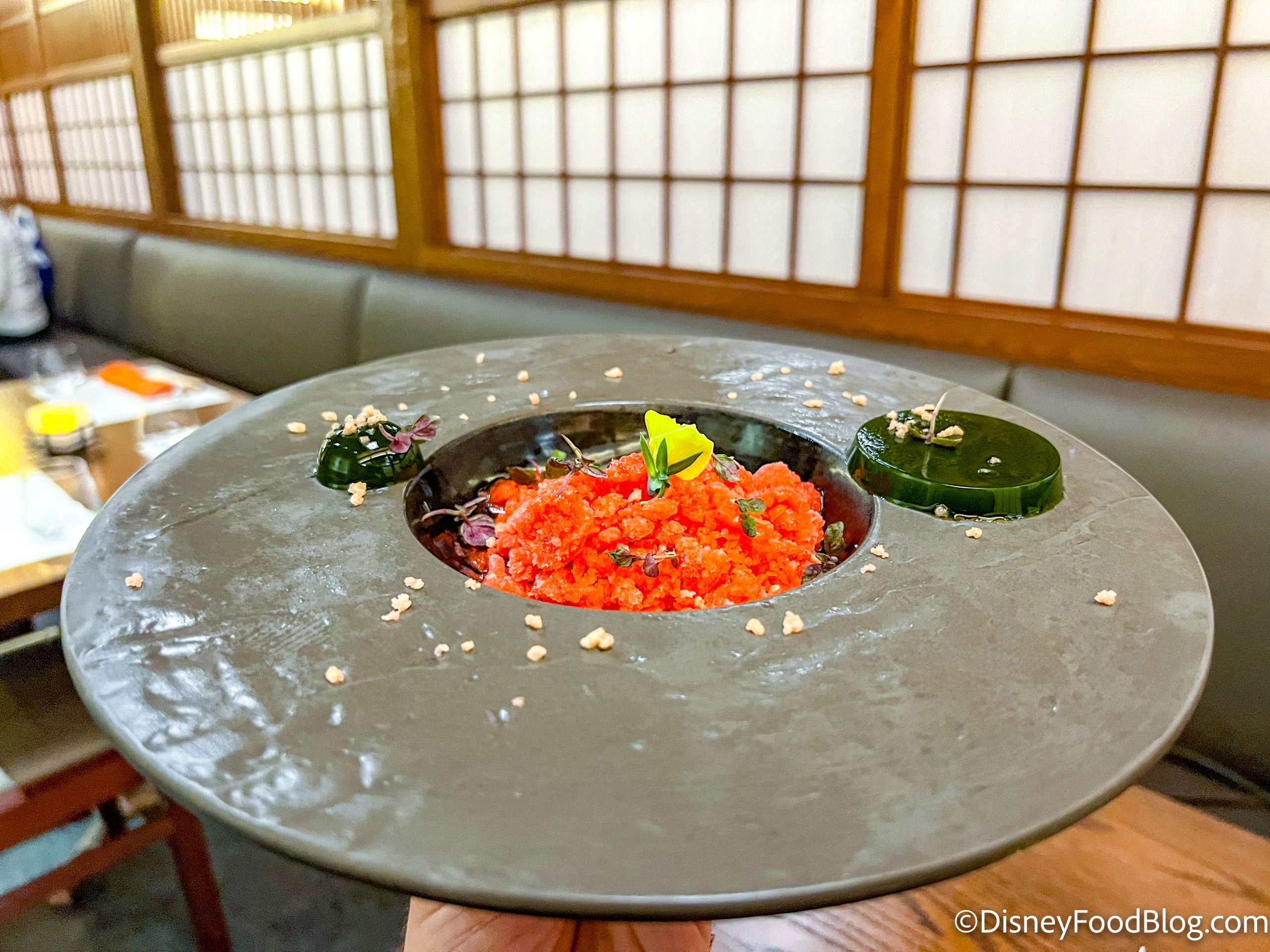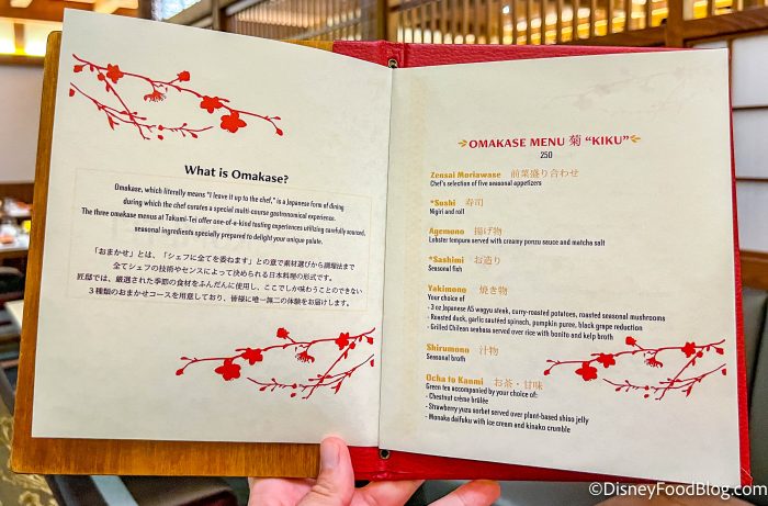 We brought you along with us for the pricey $195 experience at Monsieur Paul in EPCOT and the extravagant experience at Victoria & Albert’s (which starts at $295 per person). Today, our journey brings us to one of the most expensive restaurants in all of EPCOT — but it’s a secret spot tucked away in the Japan pavilion.