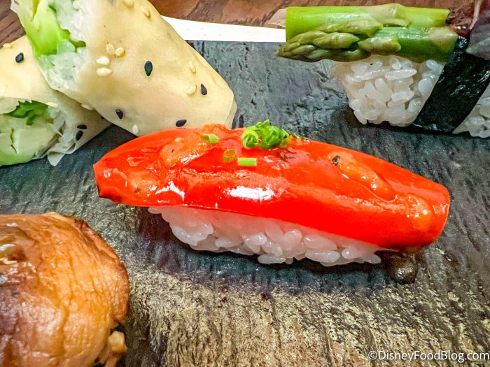 Our reporter shared that they often go to Morimoto Asia in Disney Springs (a big favorite of ours here at DFB) to get their big sushi platters. But the pieces of nigiri here were on another level.