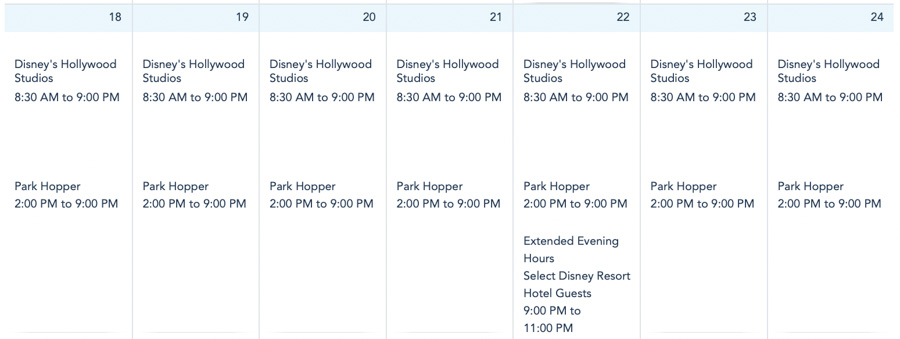 Disney’s Hollywood Studios is open from 8:30AM to 9PM all week.