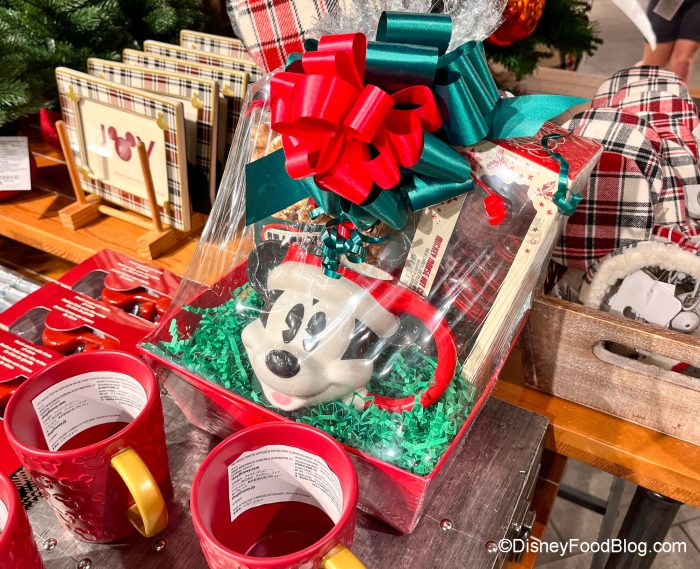 You can get a Holiday Gift Basket full of fun items, like a Santa Mickey mug!
