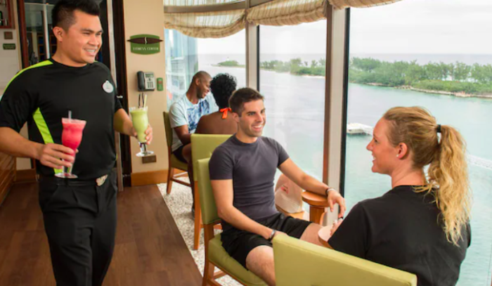 As for lounges and bars, there are several for you to check out on the ship! The adults-only lounges include La Piazza, inspired by Italian cities and plazas, Bon Voyage, inspired by the art deco era, Meridian, inspired by early ships, Skyline, featuring large “windows” that show skylines from various cities around the world, Currents, which is up on one of the top decks, and Cove Café, which is a sophisticated tropical spot.