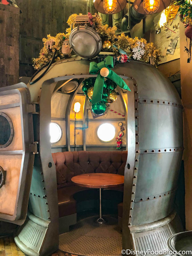 That’s where you’ll find this cozy little booth INSIDE a diving bell! This is definitely the spot to feel like you are getting away from the mad rush!