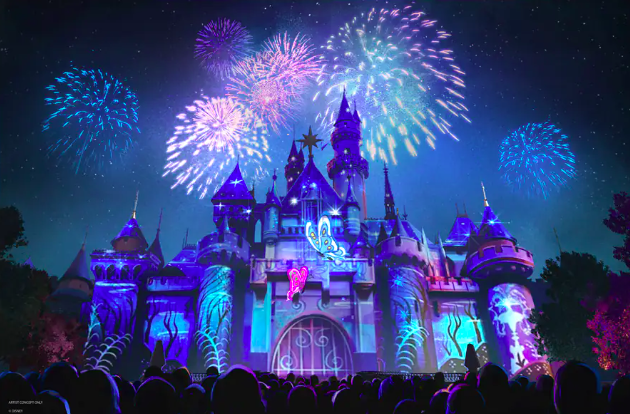 First, over at Disneyland Park, there will be a NEW nighttime show that’ll debut for the 100th Anniversary called Wondrous Journeys. The show will celebrate 100 years of Walt Disney Animation Studios storytelling with projections, music, and fireworks (on select nights). It’ll last around 13 minutes.