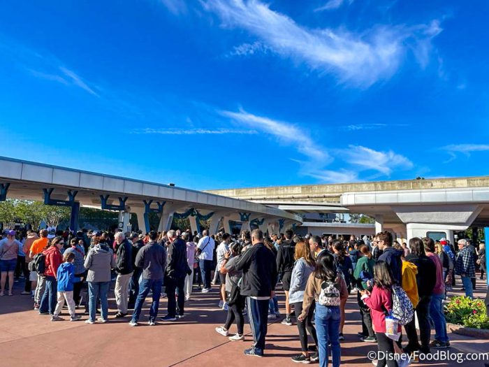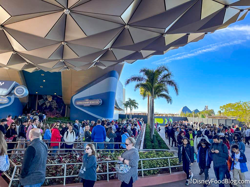At EPCOT, our morning started with a LONG parking line. If you’ll be driving your car to Disney World this week, make sure you leave enough time in your plans to get through these longer parking lines, into your parking spot, and all the way to the front of the park.