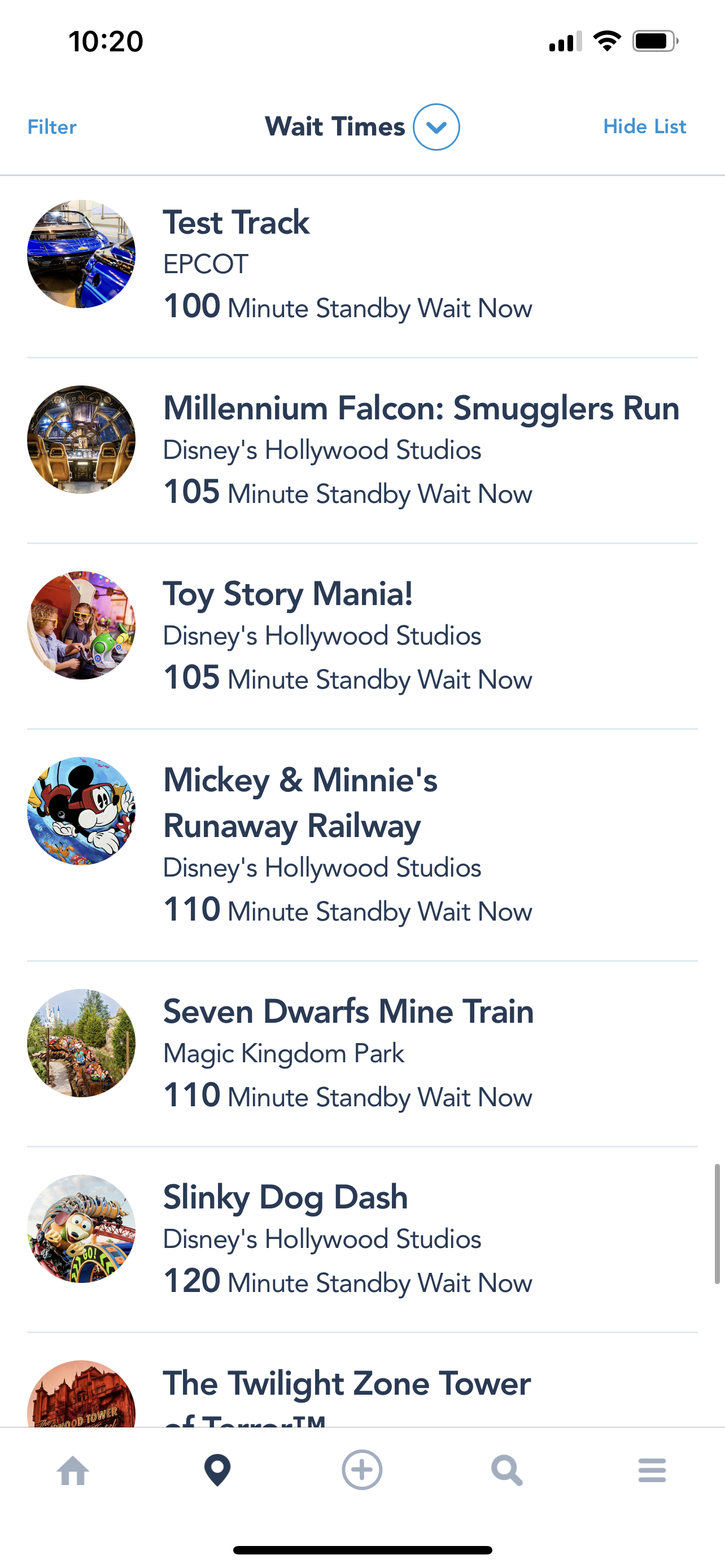 This wasn’t the only park with long lines at rides. At one point there was over 10 rides in Disney World with over 100 minute waits each. Wowza!