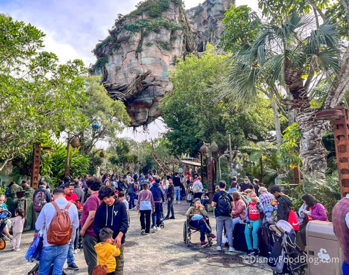 We also visited Animal Kingdom, and found quite a few people crowded over in Pandora. The line for Flight of Passage was extended pretty far out into the land.