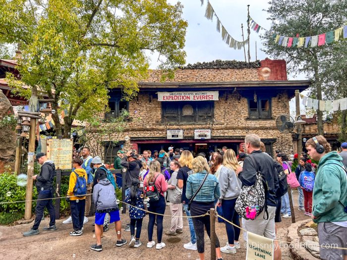 Over near Expedition Everest, there were lots of people waiting in both the standby line and the Lightning Lane queue. It seems like everywhere we go in Disney World, we’re running into people!