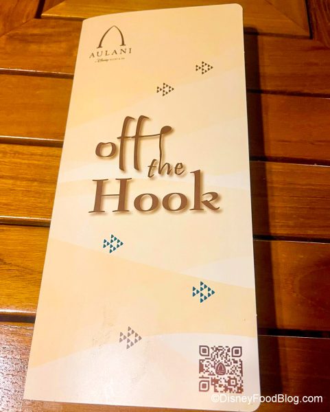 We’ll tell you — the FOOD at Disney’s Aulani Resort. There’s a reason our middle name IS “Food,” after all. We’ve already told you a bit about some other restaurants at Aulani, including Pāpālua Shave Ice, Makahiki — The Bounty of the Islands, and ‘AMA ‘AMA, so we’re now going to tell you about another dining spot, Off The Hook.