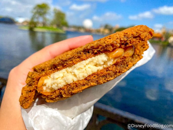 One of our absolute favorites from Karamell-Küche in EPCOT’s Germany pavilion, the Gingerbread Salted Caramel Buttercream Cookie Sandwich is a gingerbread and caramel lovers dream!