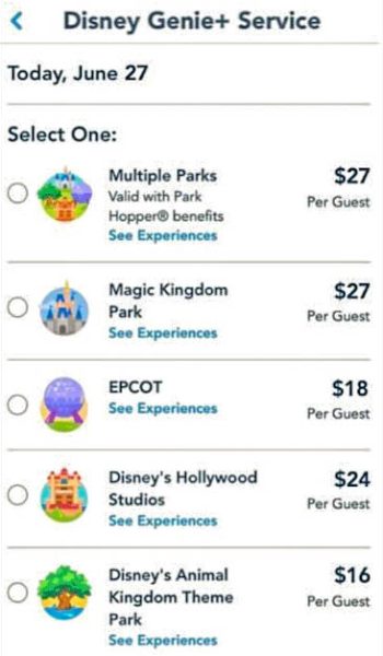 Guests can either buy a single-park Genie+ option or a multi-park option. See the new purchasing process HERE.