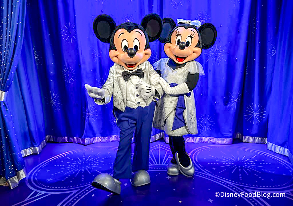 LOTS of new additions have joined the park for the occasion, including a new, platinum Mickey Mouse statue, a character-filled mural, and more platinum decorations in World Celebration, and an evening light show on Spaceship Earth (set to “When You Wish Upon a Star”). And of course, Mickey and Minnie are decked out in their best for a new meet and greet in the Imagination! pavilion.