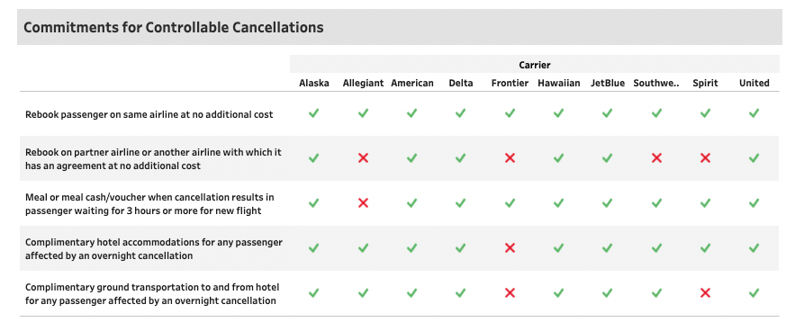 If your flight (Southwest or otherwise) ends up canceled or delayed, be sure to visit the U.S. Department of Transportation’s airline customer service dashboard. This dashboard shows what commitments airlines have made when there are controllable cancelations or delays. By reviewing this, you’ll know what compensation you’re entitled to.