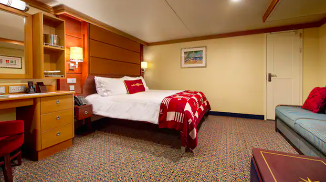 Inside Staterooms on the Disney Dream sleep 3 to 4 guests, and feature a queen bed, sleeper sofa, or upper-berth pulldown bed. These are the smallest rooms on the ship, so even though they technically can sleep up to four, they’re not all that roomy if you plan on spending a lot of time in your room.