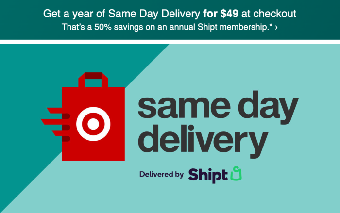 Right now, you can get an annual Shipt membership, which will get you a year of same-day delivery from Target, for $49!
