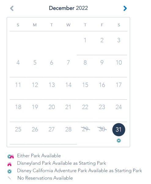 If you are planning on visiting Disneyland this holiday season, at the moment, there’s only one park available for the rest of the holiday season: Disney California Adventure still has some park pass reservations for New Year’s Eve, December 31st.