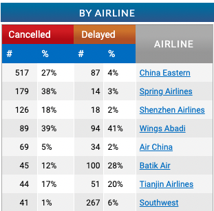 The number of Southwest cancelations for the 30th (around 41 as of 11:35PM ET) is still greater than those on United (18 cancelations), Frontier (7 cancelations), and others. But it still marks a significant decrease than previous days with Southwest.