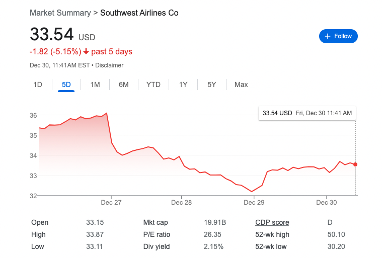 And Southwest will likely feel the impact of these cancelations for a while, as they’ll have to find a way to earn customer trust back, address the issues that put them in this situation in the first place, deal with drops in stock prices, and address the monetary impact in their fourth quarterly financial results.