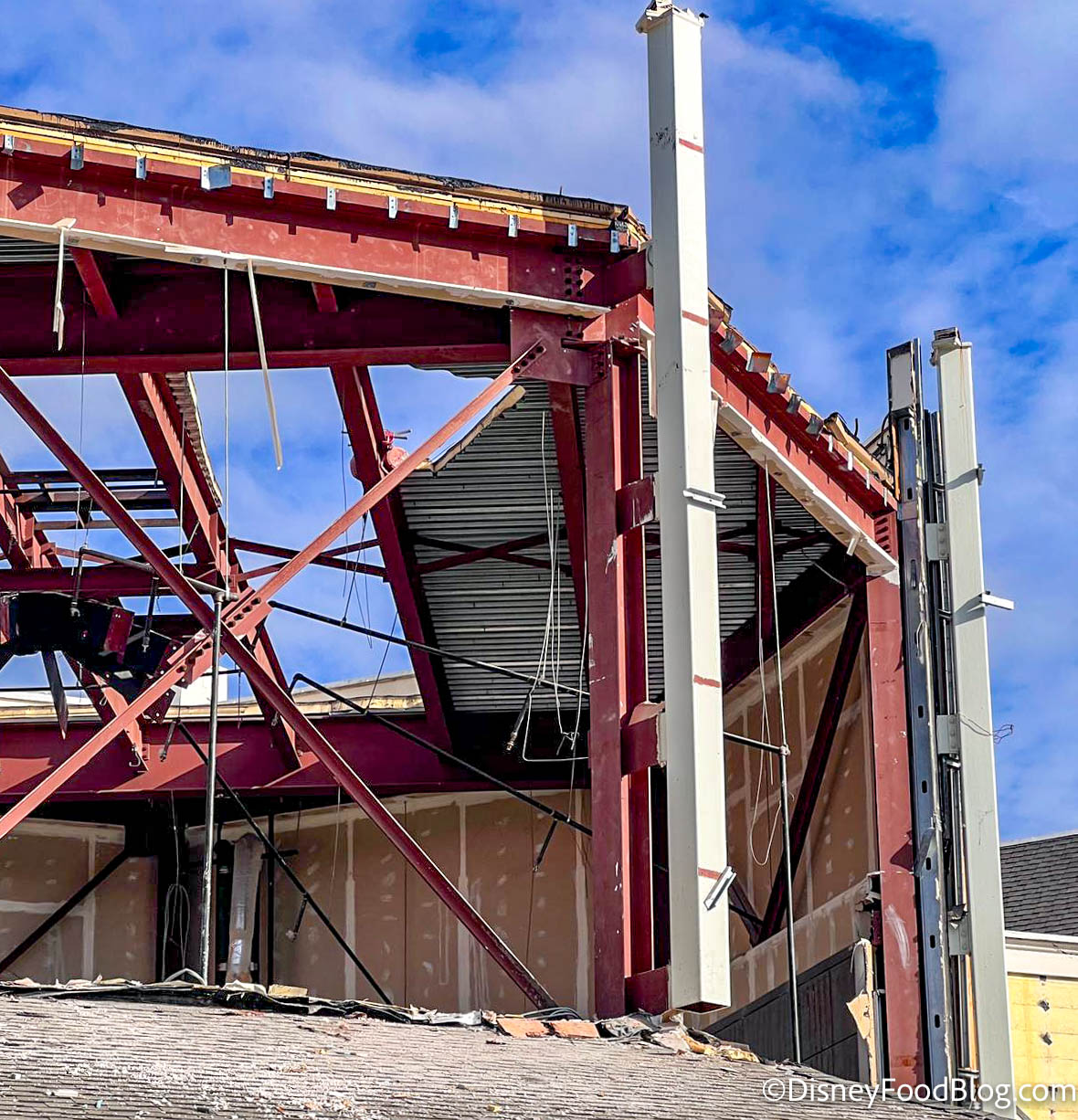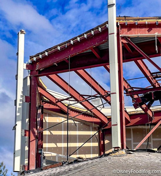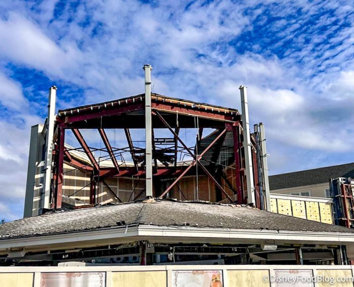 The Cake Bake Shop will take over the former ESPN Club and some big changes are already underway. When we passed by on December 30th, we could see that part of the upper structure to the left-hand side of the restaurant (if you’re facing it head-on) has been partially demolished.