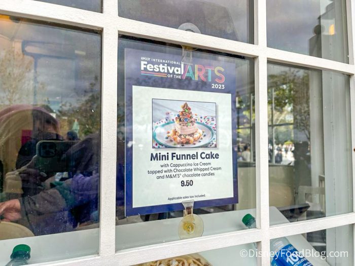 - Mocha Funnel Cake: Mini Funnel Cake with cappuccino ice cream topped with chocolate whipped cream and M&M’S chocolate candies (New) — $9.50