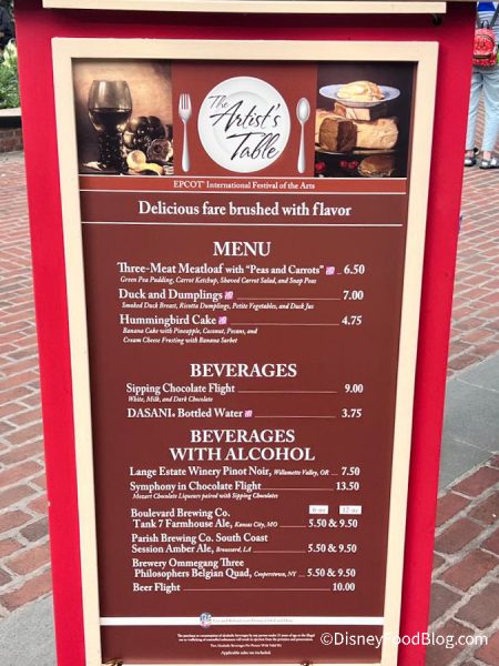 You’ll find The Artist’s Table by the American Adventure Pavilion. The focus here is on comfort foods… only ELEVATED!