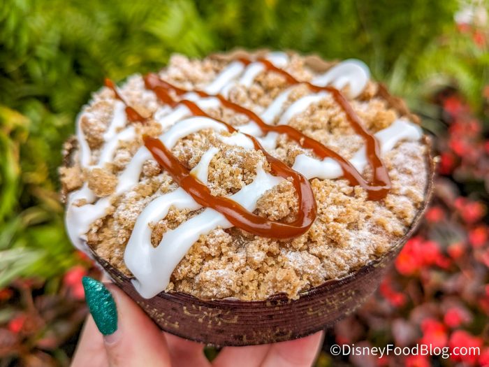 - Apple Caramel Crumb Cake (New) — $4.75, Disney Dining Plan Snack Credit Eligible