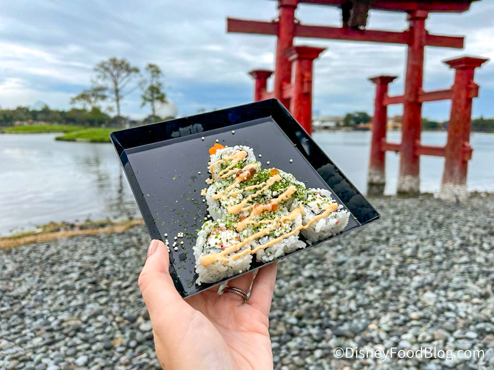 - Sushi Tree: Sushi roll with krab meat and cream cheese topped with Aonori seaweed, Ikura salmon roe, and spicy mayonnaise – $7.50, DDP Snack Eligible